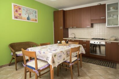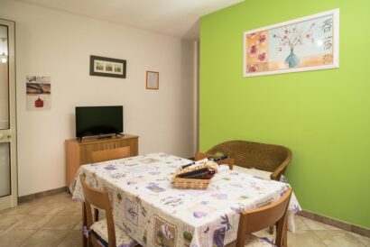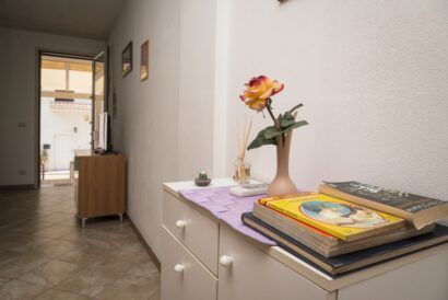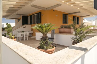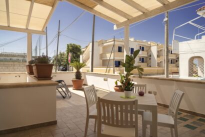 Appartamento nuovissimo in affitto per le vacanze in località Torre San Giovanni nel Salento, con il mare a pochi passi. Sulla litoranea jonico-salentina, che porta da Gallipoli a Santa Maria di Leuca, alla periferia di Torre San Giovanni (Marina di Ugento), rinomata località vacanziera del basso salento, sorge un nuovissimo complesso abitativo composto da quattro appartamenti , finemente arredati, con TV, wifi gratuito in ogni stanza, climatizzatore e soprattutto vicinissimi al mare. Un mare cristallino dove già alle prime ore dell’alba si fa vedere in tutta la sua bellezza e dai profumi così intensi, che in pochi attimi attirano il turista verso le prelibatezze locali, sia marinare che contadine. Il mare, quello vicinissimo alle abitazioni è di scoglio basso, sono presenti anche due piccole spiaggette con la sabbia; il lungo litorale sabbioso invece è raggiungibile in pochi minuti d’auto, poiché dista dalla casa circa 2000 metri. L’appartamento è posto al piano terra ed è composto da soggiorno pranzo con cucina componibile, una camera con letto matrimoniale, seconda camera con due letti singoli che all’occorrenza possono essere uniti, il bagno è con doccia. L’appartamento poi dispone di spazio antistante allestito con tavolo e sedie ed ombrellone, inoltre adiacente agli appartamenti c’è uno spazio comune dove vi sono a disposizione 2 lavatrici, un lavatoio ed una doccia esterna.